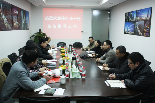 区领导和管理总部管委会领导在管理总部5楼会议室进行了座谈。管委会常务副主任钱伟中首先对孙副区长一行到访星光大道指导工作表示热烈欢迎,并就星光大道一期的招商、经营情况和星光大道二期的工程建设情况向区领导作了详细的汇报和介绍。星光大道在滨江区委区政府的大力支持和帮助下,一期项目招商、经营取得了积极成果,二期项目顺利实现了开工。同时,钱总还提出了星光二期项目在开发建设、星光一期在经营管理中存在的困难和问题。